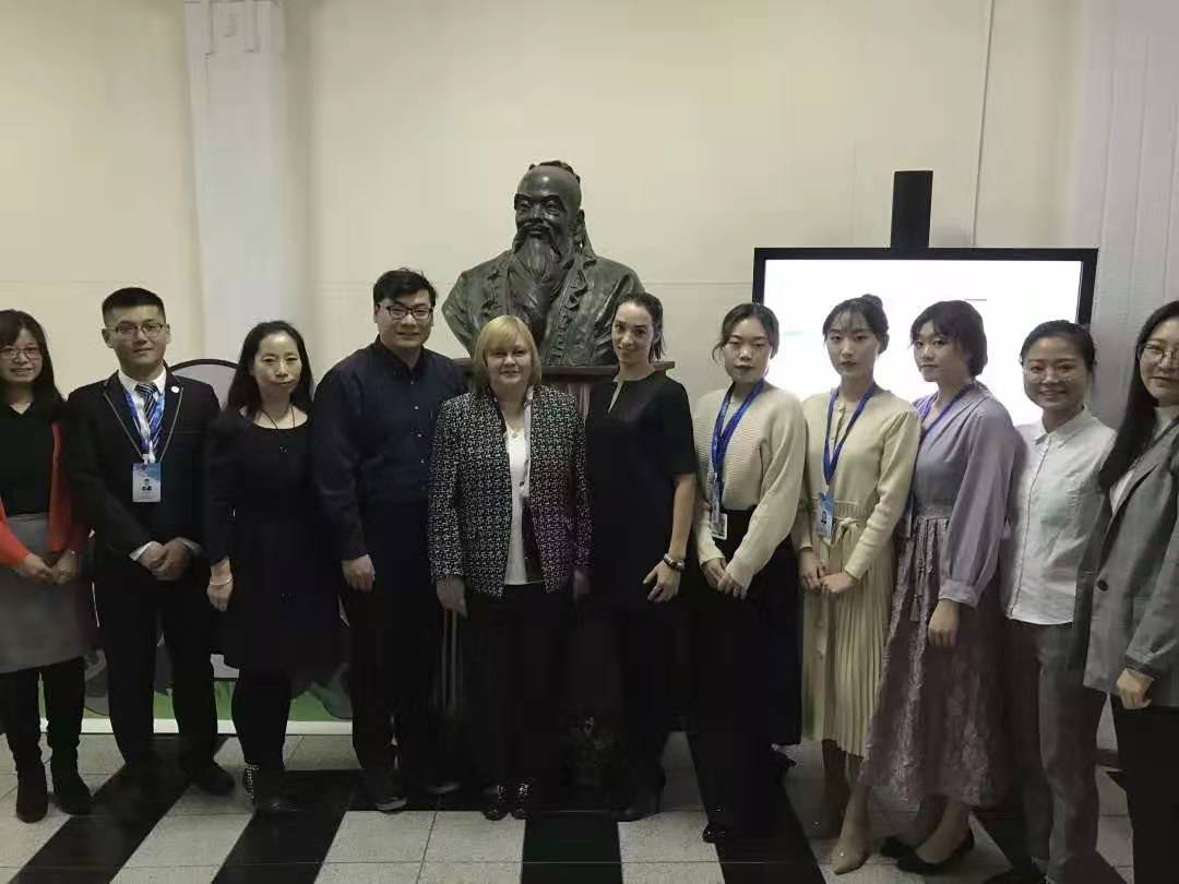 On December 11, delegation of teachers and students from the School of International and Public Affairs of Jilin University went to the Confucius Institute of the Far Eastern Federal University of Russia to conduct the "Investigation on the Construction and Development of Confucius Institutes in Northeast Asia". The purpose of this visit is to understand the construction and development of Confucius Institute and the current situation of Chinese teaching in that region, and lay a foundation for further promotion of Chinese teaching there. Natalia Josephus, deputy dean of the Confucius Institute of Far East Federal University of Russia, and nearly ten faculty members of the Confucius Institute met with representatives of teachers and students and held a discussion.